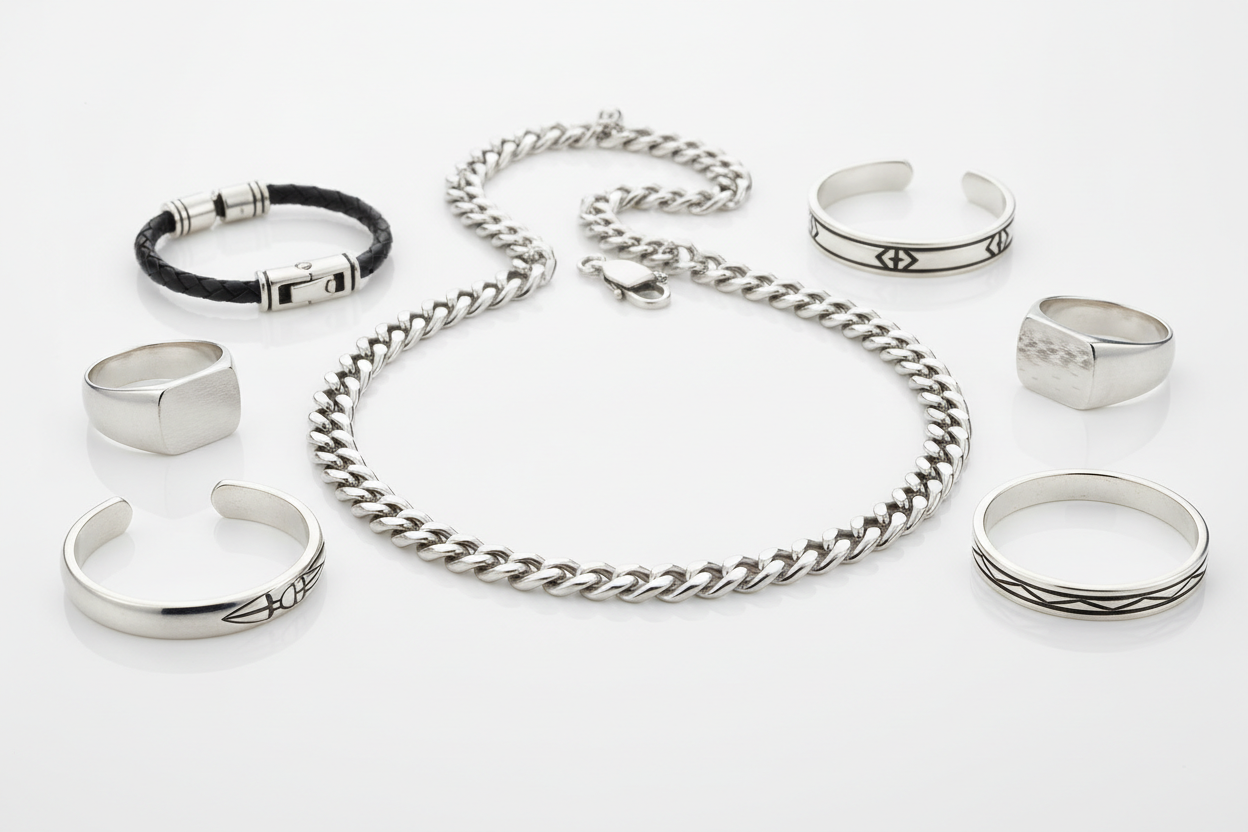 Sublimez votre style avec des bijoux variés en argent pour hommes.