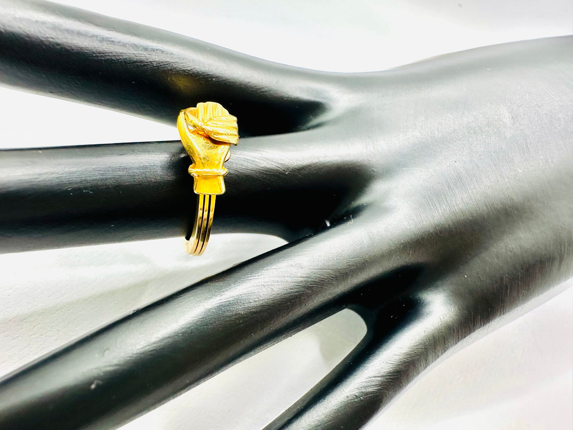 Bague de Foi ou bague Fédé en or jaune 18Kt (poinçon : tête d'aigle) composée de trois anneaux à transformation, ornée du motif de fédé.
