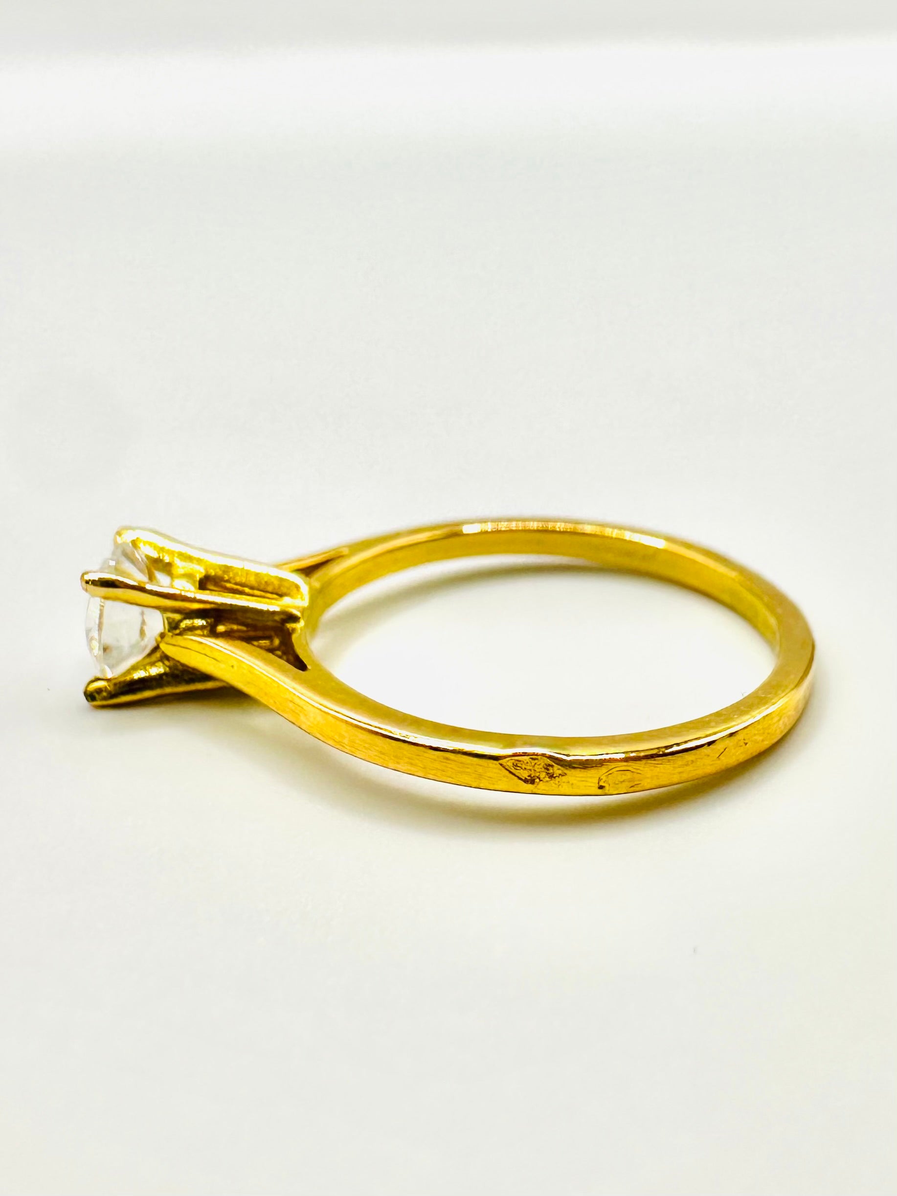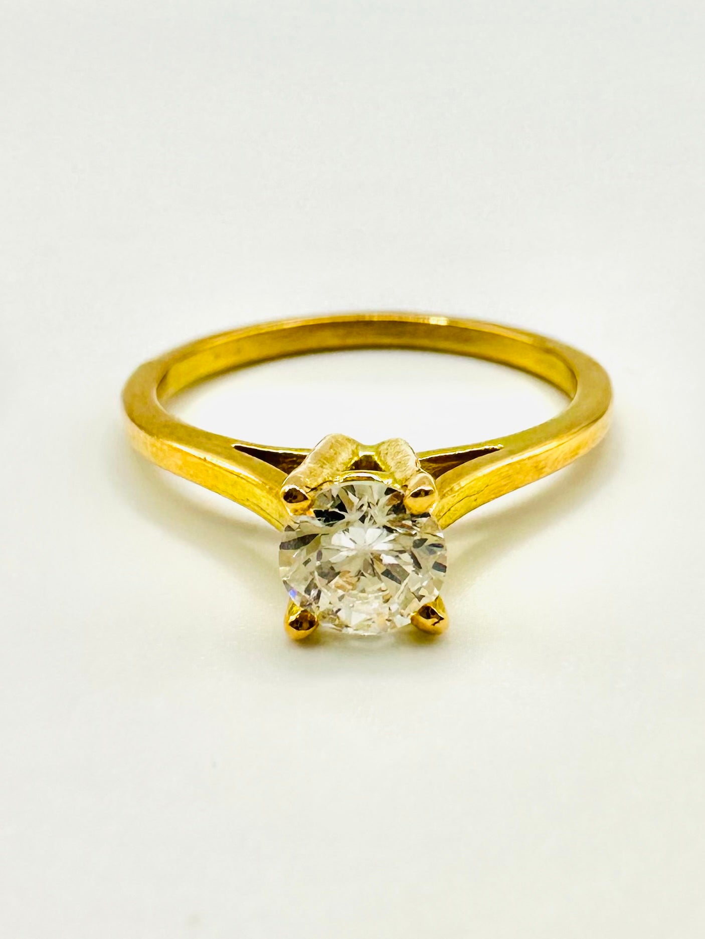 Intemporel et raffiné, ce solitaire en or jaune 18 carats (750/1000) incarne la pureté du sentiment amoureux. Monté d’une pierre centrale éclatante, il met en valeur la lumière et sublime la main avec grâce. Sa monture fine et lumineuse en fait un choix parfait pour une demande en mariage ou un cadeau symbolique.