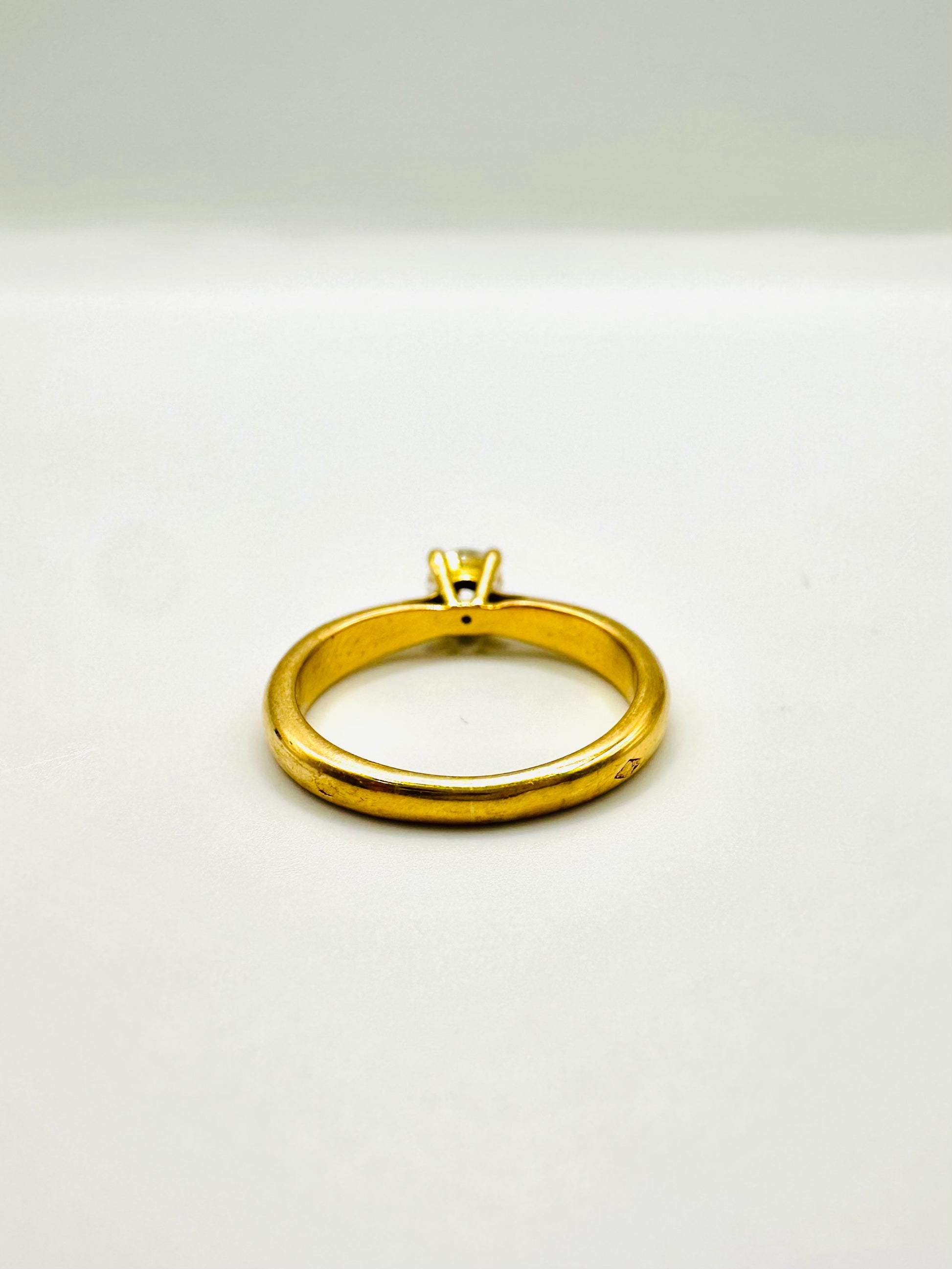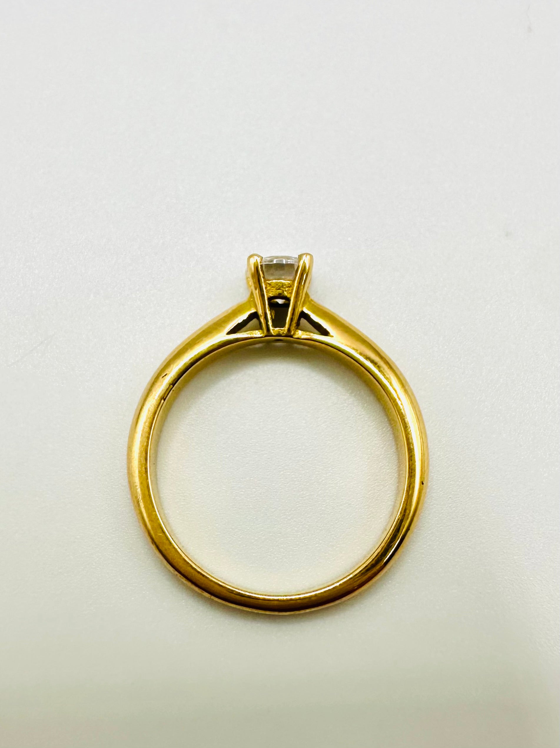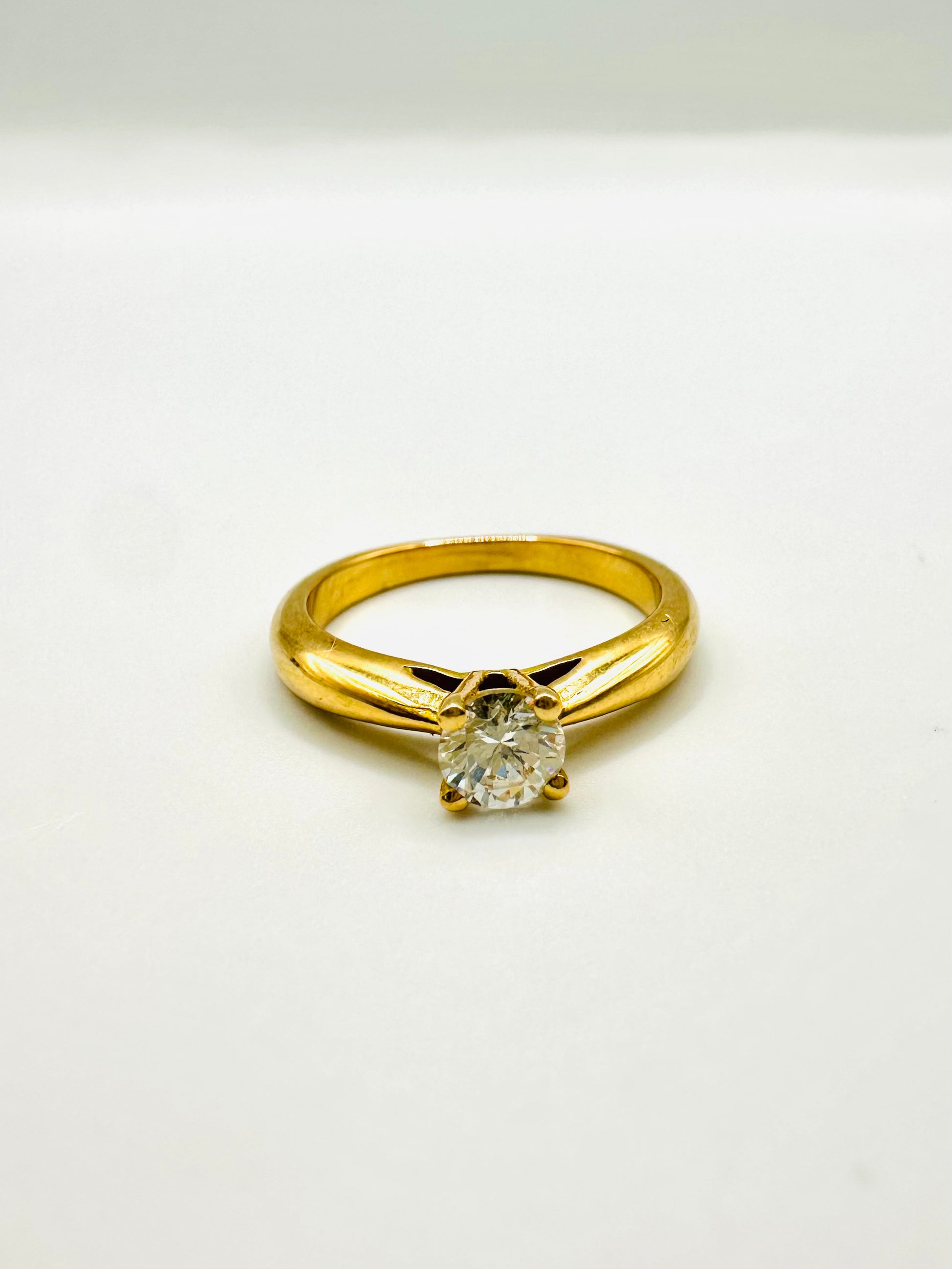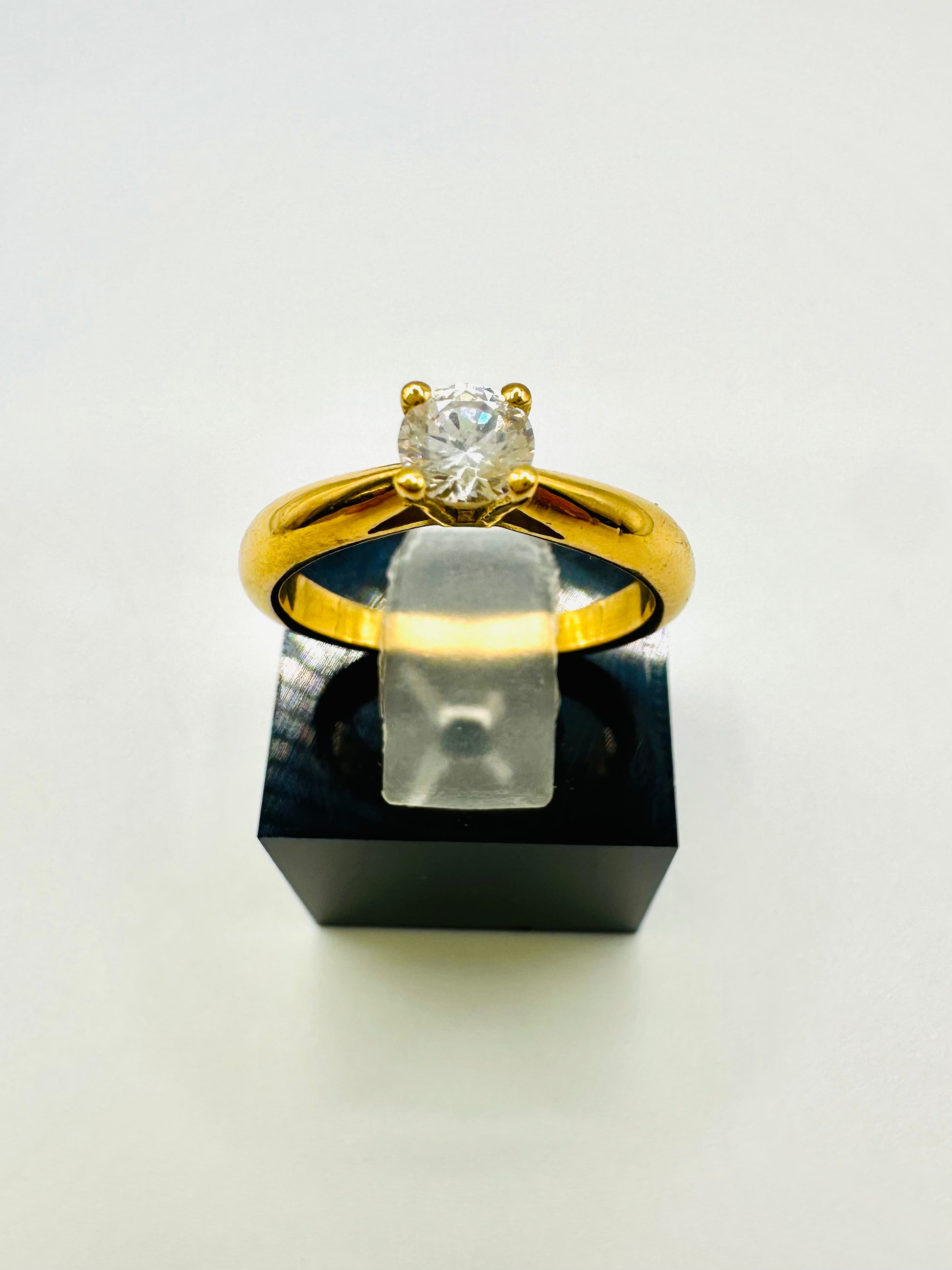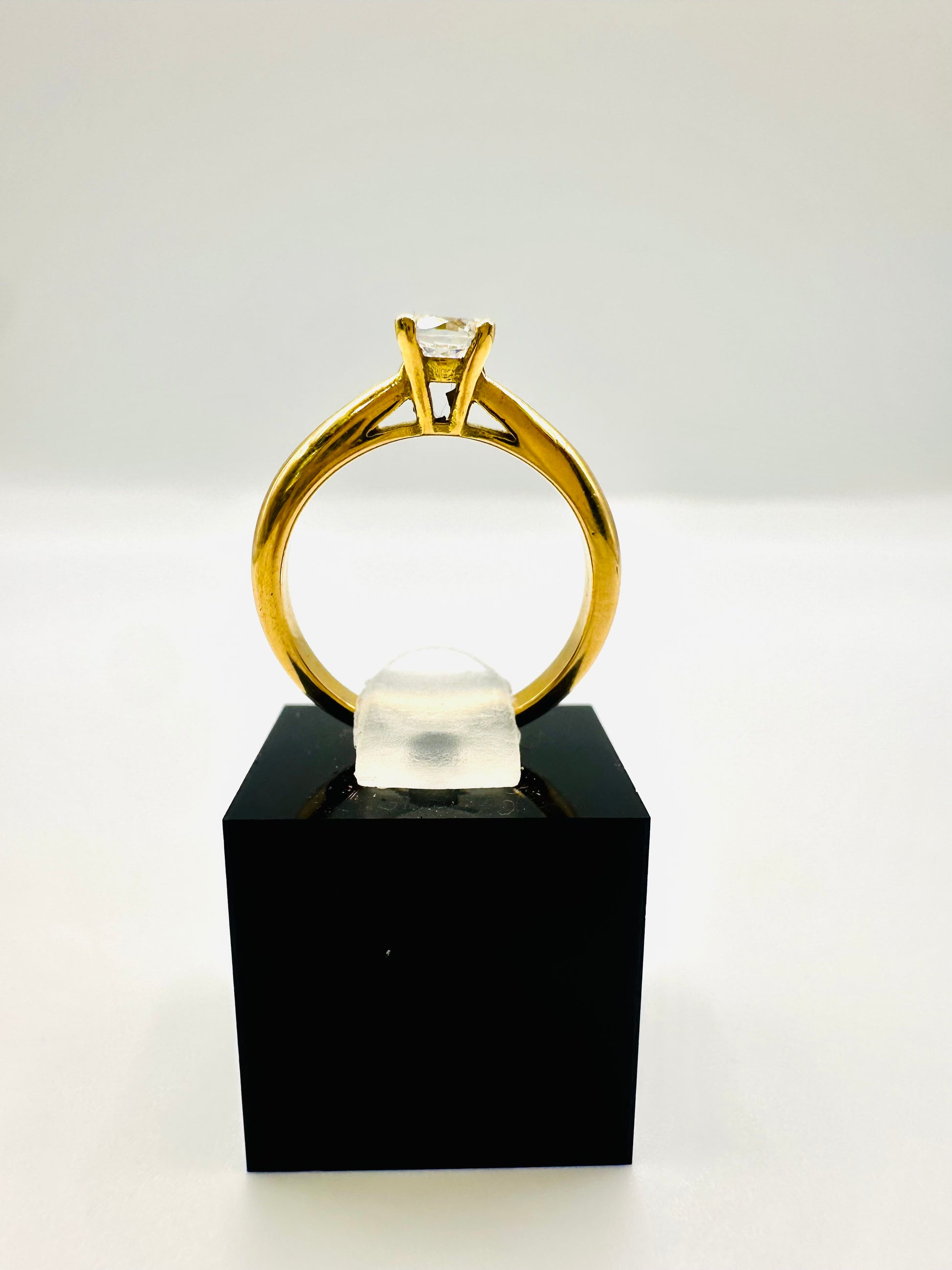 Laissez-vous séduire par la pureté et le raffinement de cette somptueuse bague solitaire. Conçue pour symboliser l’amour éternel, cette bague de mariage en or 18 carats affiche un design épuré mettant en valeur une pierre centrale délicatement sertie.
