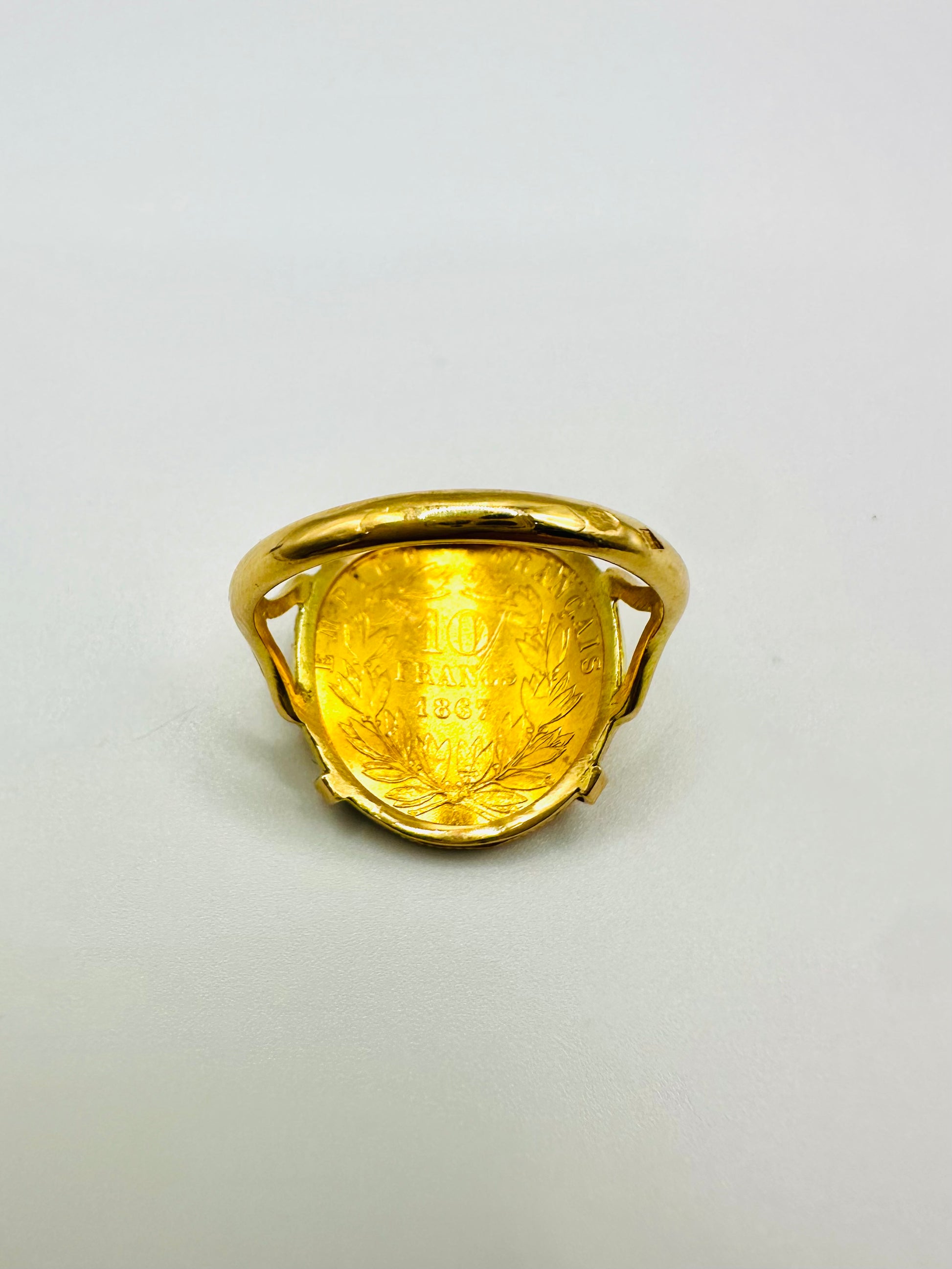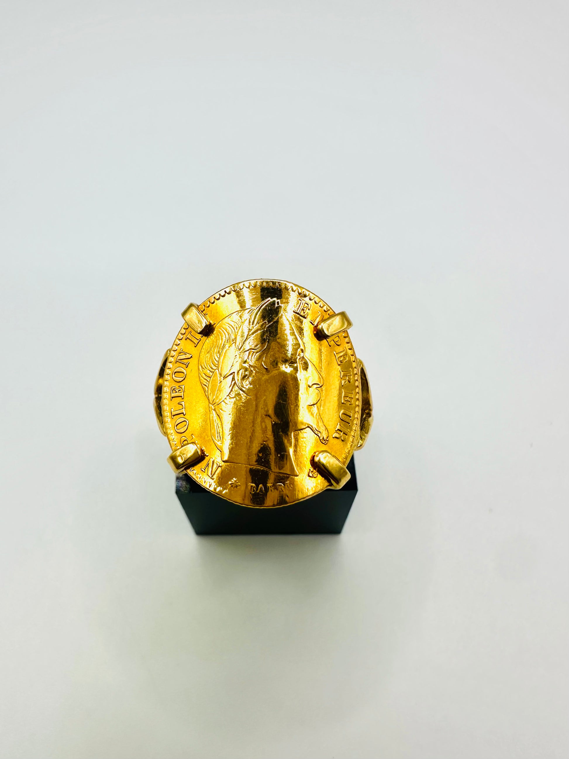 Bague Porte-Pièce Courbée “Napoléon 10 francs” – Or 18 et 21carats ~ 4 griffes