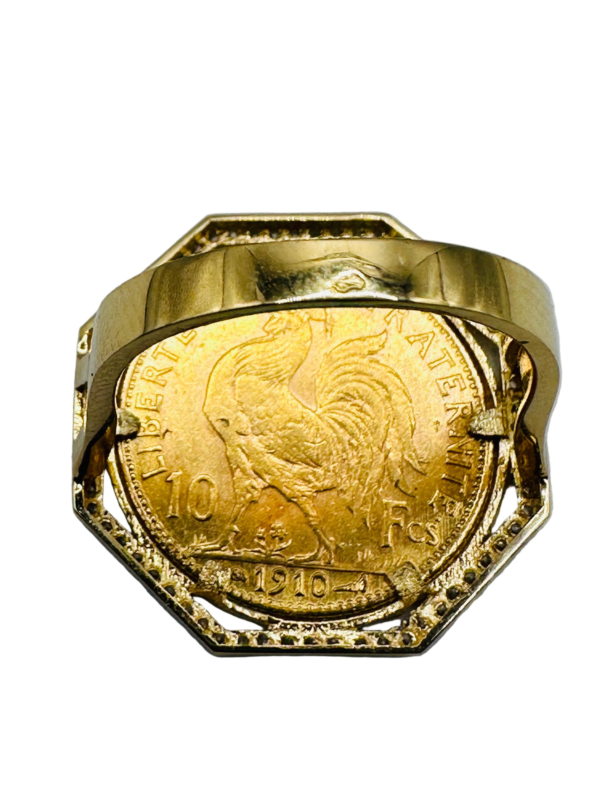 Bague Porte-Pièce Hexagonale Marianne – 10 Francs Or 21,6Ct & 18Ct