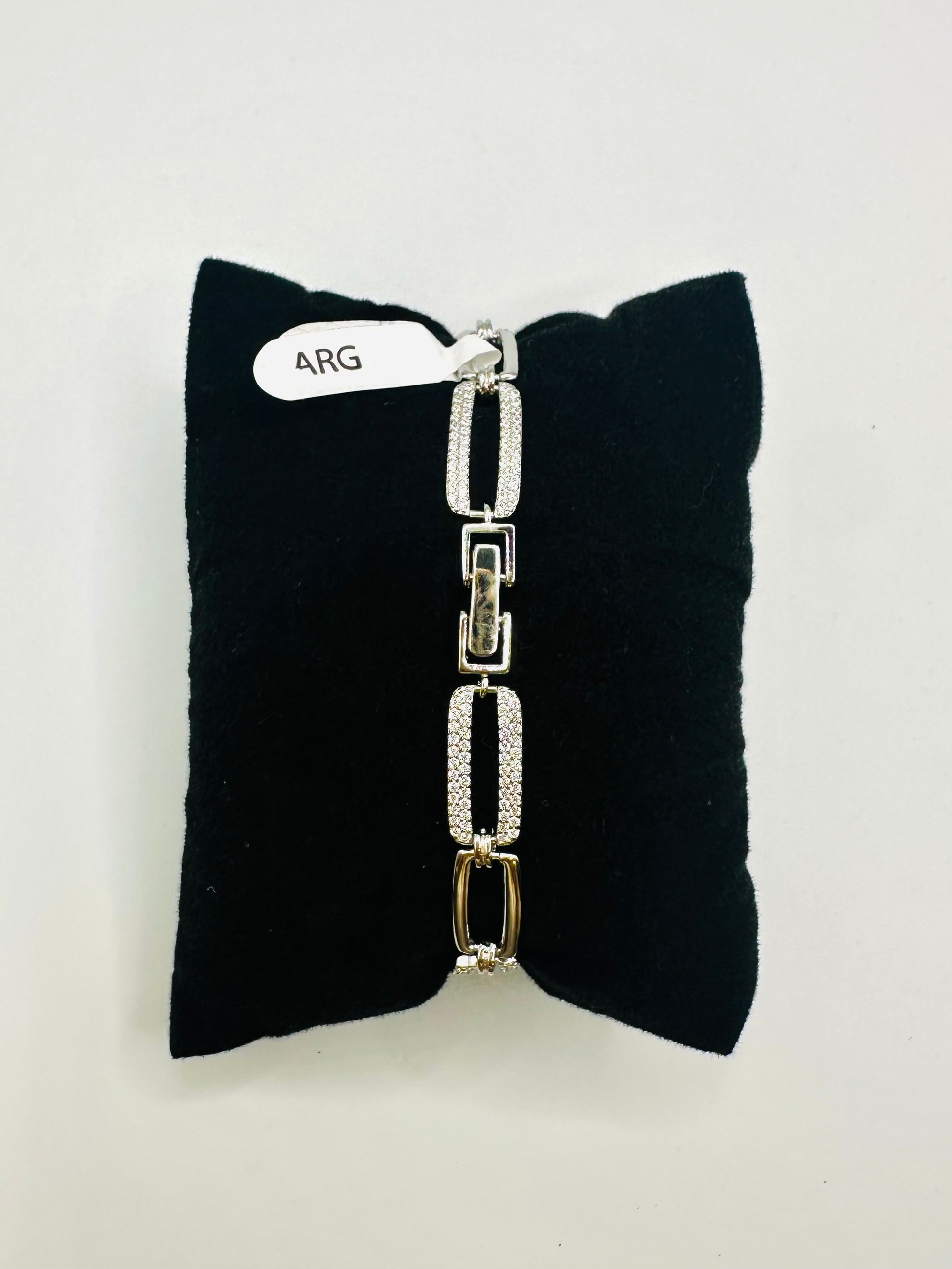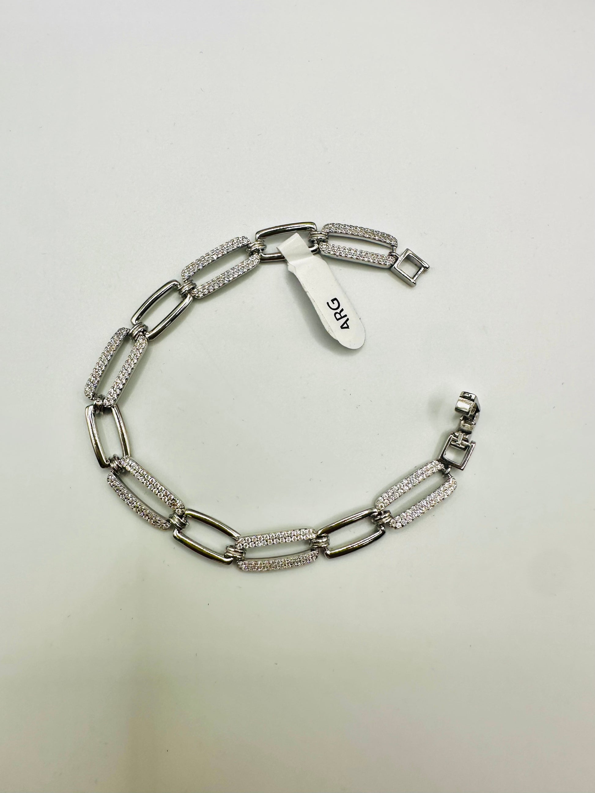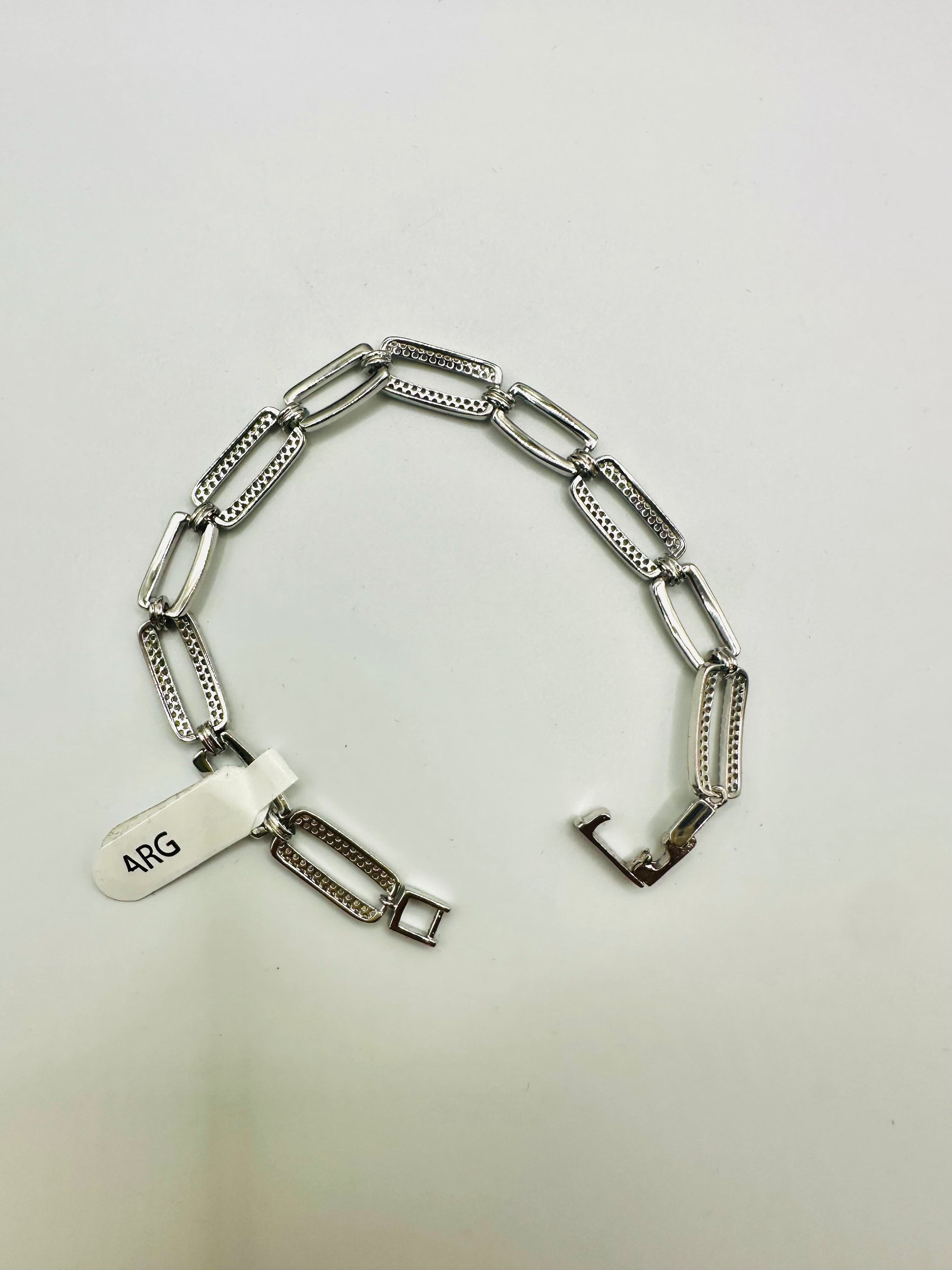 Ce bracelet féminin en argent 925 séduit par son design élégant et rythmé. Il est composé de deux types de rectangles reliés entre eux de façon alternée :