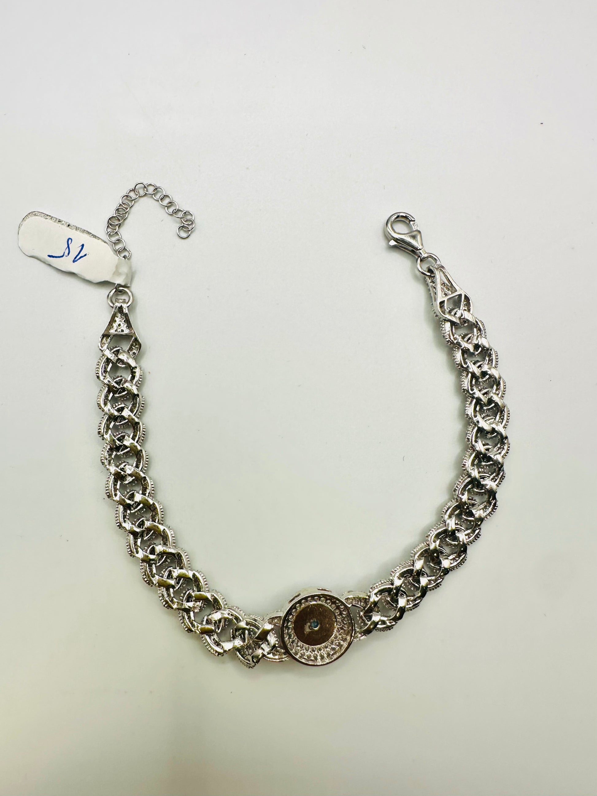 Ce bracelet délicat est entièrement composé de perles argentées élégantes, montées avec soin sur une base en argent 925. En son centre, un œil magnifiquement travaillé attire les regards : un symbole intemporel de protection, d’intuition et de chance.