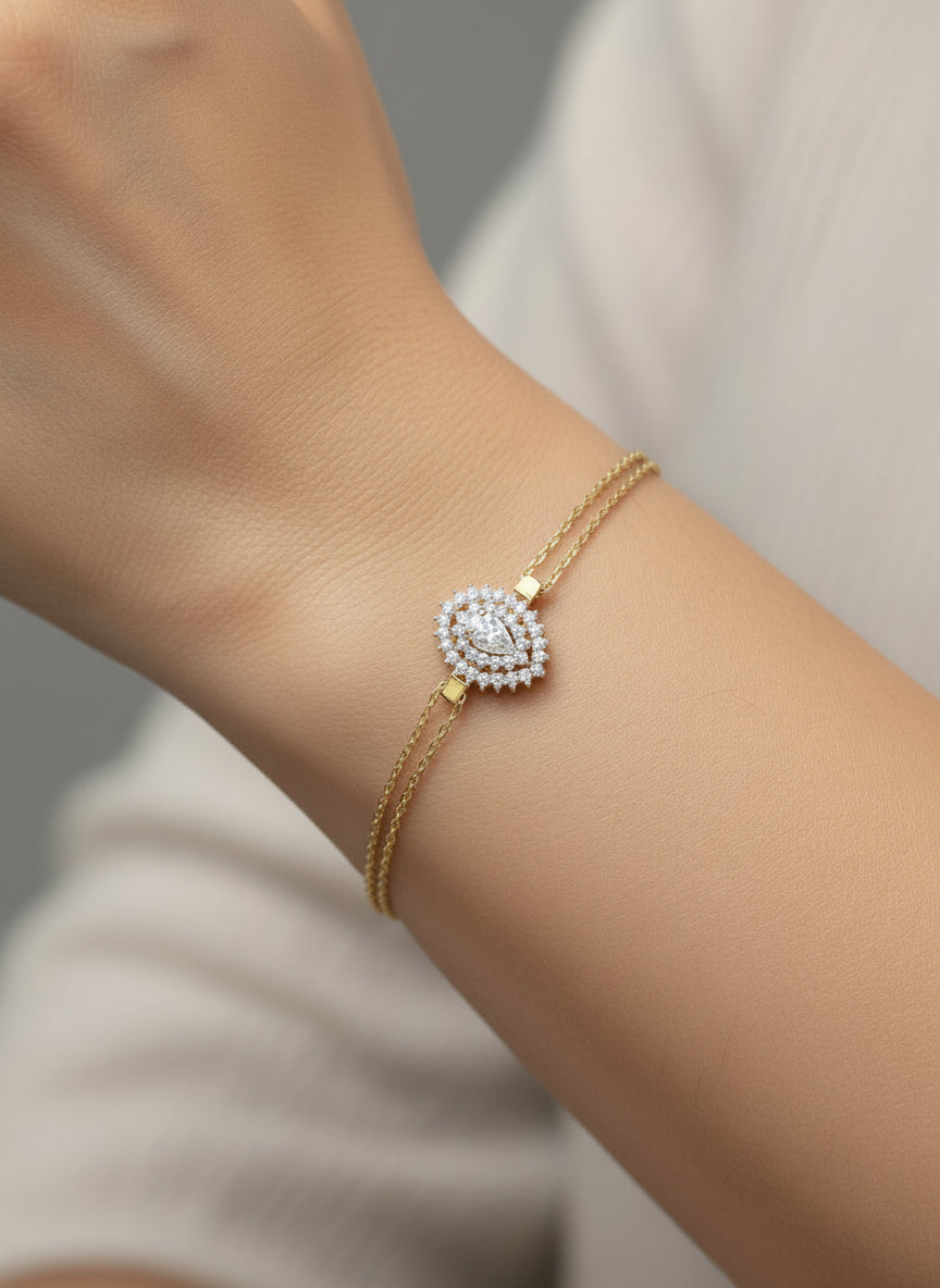 Ce bracelet délicat en or 18 carats, entouré d’un serti scintillant de zircons. Son design fin et moderne apporte une touche de caractère tout en restant élégant et discret. Avec ses 20 cm de longueur, il épouse parfaitement le poignet pour un rendu raffiné.
