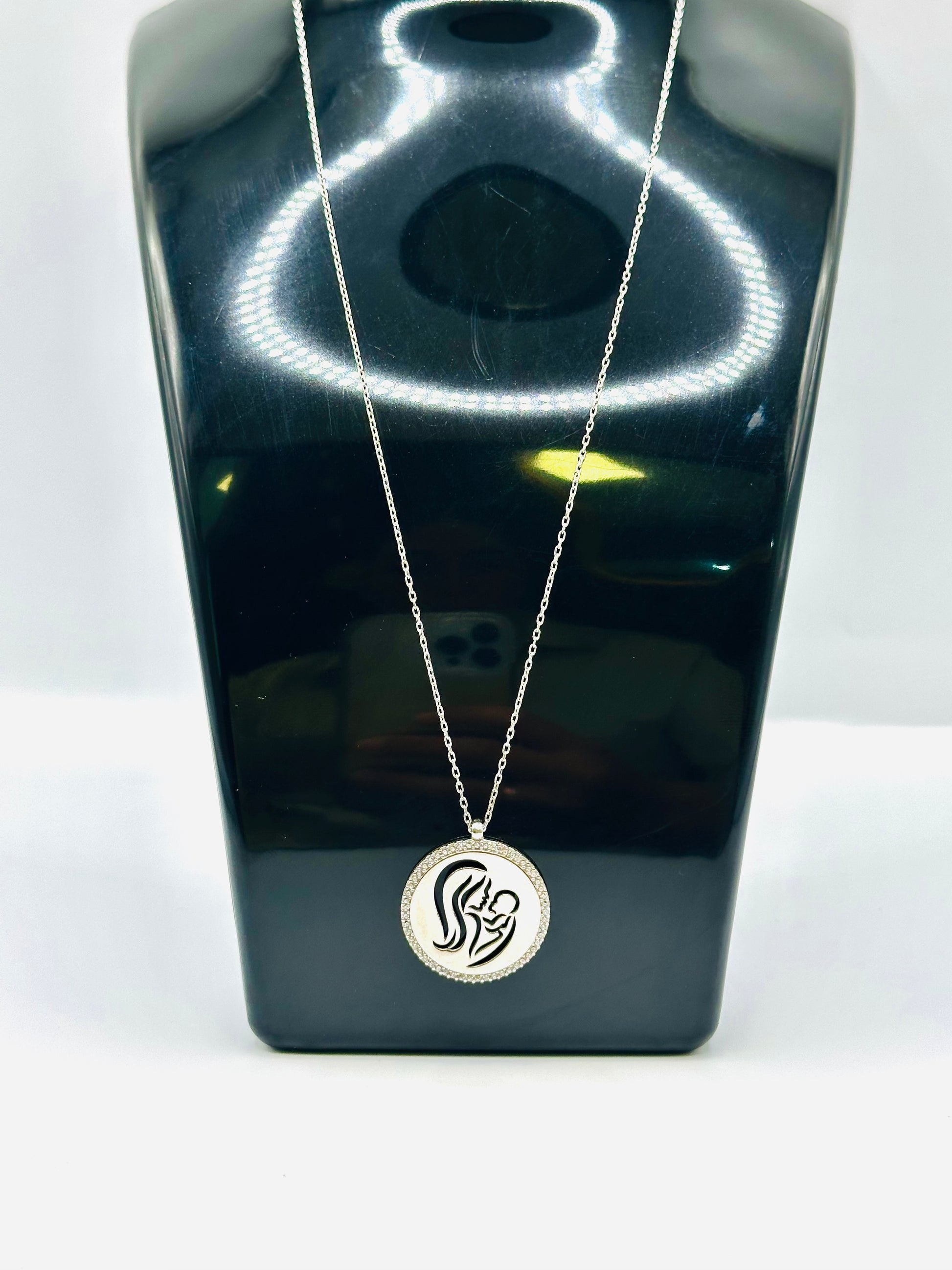 Chaîne en argent 925 avec pendentif rond “Maman & Bébé”