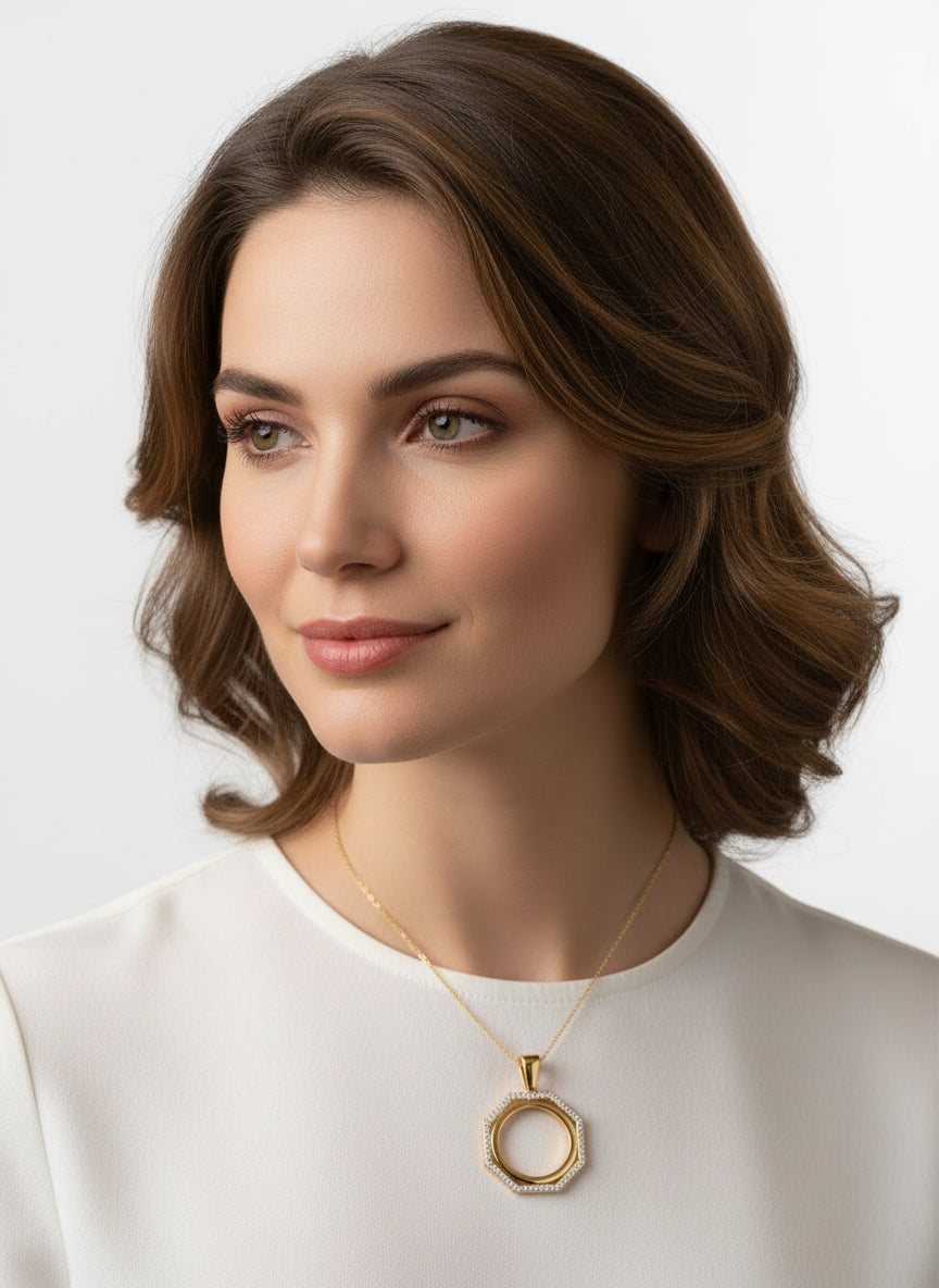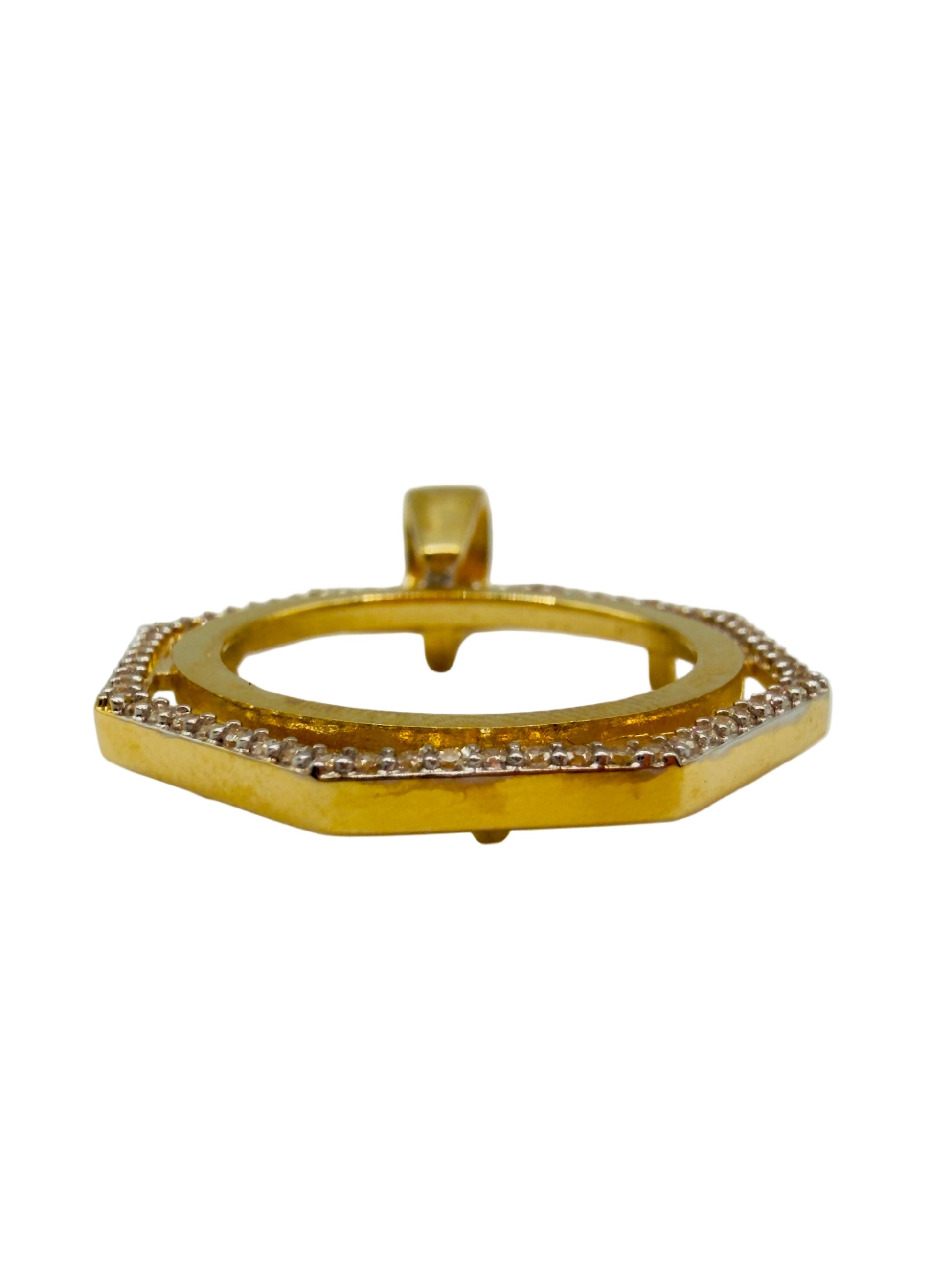 Pendentif hexagonal est parfait pour une pièce de 10 Fr. mesure 19 mm de diamètre et pèse 3,92 g en or 750/1000. Ajoutez une touche de luxe à votre collection.